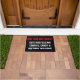 Dejar claro a los abogados de puerta en puerta que no son bienvenidos en tu casa con este tapete de puerta negra con texto de personalizable en rojo y blanco. Aunque no eres del todo frío, los niños lindos que venden dulces siempre son bienvenidos a tocar el timbre.