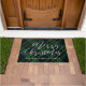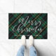 Felpudo Merry Christmas Script Green Plaid Family Name