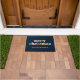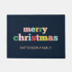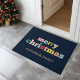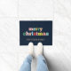 Colorida, festiva, tipográfica "Feliz Navidad azul", alfombra de puerta de vacaciones. Personalizar con su firma familiar.