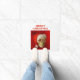 Merry Christmas text can be customized by you. Photo of a plastic skull wearing a Santa hat on a red background.