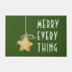 La tarjeta de vacaciones de estilo moderno y minimalista presenta una estrella rústica en un adorno de cuerdas con el texto blanco "Merry Every Thing" sobre fondo verde oscuro.