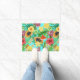 Felpudo Mezcla tropical, flores y hojas en azul
