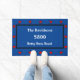 Su dirección en el borde azul del doormat con estrellas rojas ayudará a los conductores de reparto a dejar el paquete en la casa derecha.