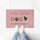 El My Dog no lo permitiría es perfecto para los que prefieren las comodidades de casa y la compañía de su perro. El diseño de la alfombra de la puerta incluye un texto que dice "Me iría...pero mi perro no lo permitiría", con una huella de pata y adornos de silueta de perro en un fondo de madera rosa. También hay artículos de regalo adicionales disponibles con este diseño.