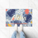 Felpudo Mod Monstera Leaf Resumen Tropical Hawaiano - Azul