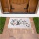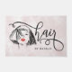 Elegante alfombra de puertas de diseño para peluquería, peluquería con fondo de mármol rosa claro y caligrafía escrita a mano "cabello" en color negro profundo. Personalice con un nombre en la parte delantera.