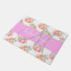 Doormat de moda y monograma giratorio con calabazas de color rosa y melocotón floral primavera / otoño y fondo blanco. Su nombre y monograma personalizados están escritos en un elegante guión gris y blanco con letras a mano con un fondo rosado. Puede cambiar el color del texto y el estilo y el tamaño del tipo de letra mediante la opción personalizar.