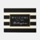 Haga una declaración en su puerta principal con este elegante y elegante portero. Un sencillo diseño clásico presenta rayas blancas y negras con acentos dorados. Personaliza con tu nombre.