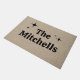 Personalizado añada su propio monograma, inicial, nombre de familia estilo retro faux jute linen burlap moda rústico estera de puerta de moda de campo.