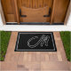 Felpudo Modern Black White Monogram Script Family Name