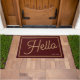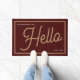 Felpudo Modern Hello Burgundy Gold Script Family Name