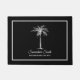 Añade tu propio toque especial a este diseño elegante y sencillo que incluye tu nombre o frase familiar y fecha establecida en texto blanco y palmera enmarcada en un borde blanco sobre un fondo negro.