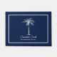 Añade tu propio toque especial a este diseño elegante y sencillo que incluye tu nombre o frase familiar y fecha establecida en texto blanco y palmera enmarcada en un borde blanco sobre un fondo azul marino.