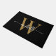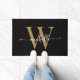 Alfombra personalizada moderna elegante y femenina con monograma inicial de nombre en negro y dorado. Este diseño presenta un nombre en una fuente de letra manuscrita con florituras (o tipografía) con monograma inicial en dorado y blanco sobre negro. Un regalo femenino y elegante para inauguración de hogar, también para cumpleaños, boda, despedida de soltera, aniversario y fiesta de soltera. Es para la chica que le gustan las cosas minimalistas limpias.