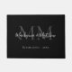 Moderno Y Elegante Blanco Blanco Negro Nuevo Nombre Monograma Inicial Guión Doormat. Personalice con su nombre de monograma, iniciales y fecha. Idea de regalo para recién casados.