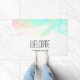 Un portero de bienvenida con un borde abstracto en la parte superior, con colores chillones verdes y azules. Un diseño suave y veraniego. Una textura cruza la luz detrás de la imagen.