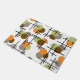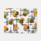 Un patrón de época atómica retro inspirado en los círculos de molécula marrón, naranja, gris y chartreuse, junto con líneas de negrita de estilo moderno de mediados de siglo.