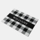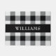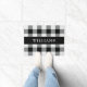 Este doormat blanco y negro clásico del modelo del control del búfalo tiene una tira negra a través del centro con un apellido en el texto blanco. Personalice con su propio nombre o dar como regalo.