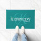 Felpudo Monograma de apellido moderno Verde azulado inicia