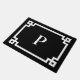 Borde rectangular geométrico de estilo clave griega blanca decorativo sobre una alfombra de puerta de 18" x 24" negra con un moderno monograma serif. Personalizar este diseño editando el blanco o el negro con tu elección de color favorita. Cambie el estilo, el tamaño o el color del tipo de letra según sea necesario. Coincide con este tono de moda en la decoración minimalista de su casa. También disponemos de una llave griega para el gran tamaño de la alfombra de la puerta. Envíe una solicitud si necesita otro regalo con un área de impresión única.