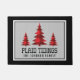 Anillo en temporada de vacaciones con este felpudo de estilo rústico que presenta tres árboles de siempre verde representados en un patrón de control de búfalos rojos y negros, un alegre mensaje de vacaciones que dice, "Plaid Tidings", y monograma de personalizable. Modifique este diseño agregando su nombre de familia para crear una cálida e inolvidable bienvenida a su hogar esta temporada de Navidades. También hace un gran regalo para los nuevos propietarios de viviendas.