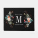 Esta alfombra de puerta personalizado presenta un spray floral botánico a ambos lados de un primer monograma. Personalizar el texto de "bienvenida" y el apellido.