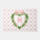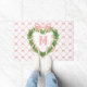 El diseño de la alfombra de la puerta presenta un fondo con estampado de bambú rosado y blanco muy moda y una corona en forma de corazón con un arco rosado coordinado. Puede personalizar con su monograma inicial.