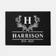 Bienvenido a los huéspedes con elegancia intemporal utilizando este doormat negro personalizado. El elegante monograma, el nombre de la familia y el año establecido, todos mostrados en una fuente blanca y nítida, crean una entrada acogedora y personalizada. Esta puerta, elaborada con materiales duraderos, es perfecta para añadir un toque de sofisticación a su porche o patio.