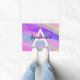 Doormat de Girly y Glam con un fondo de arcoiris de unicornio colorido, y el purpurina de oro destellan confetti. Personalice su nombre personalizado en negro y su monograma inicial en blanco. Puede cambiar el color del texto y el estilo y el tamaño del tipo de letra mediante la opción personalizar.