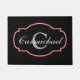 Esta alfombra de bienvenida, diseñada a medida para tu puerta, incluye un monograma y un apellido rodeados por un marco decorativo de color negro con acento rojo. Inserte su nombre y el texto inicial en lugar del texto de ejemplo mostrado en la plantilla de diseño. Para cambiar el tipo de letra, seleccione el botón "personalizar".