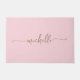 Elegante Femenino Minimalista Moderno Monograma de oro Nombre Script Firma Personalizado Personalizado Rubor Rosa Doormat. Con el nombre de pila en una letra con letras de mano de bonito, caligrafía (o tipografía) de tipografía de cola en dorado sobre fondo de color rosa o rosado de bebé. Gran regalo elegante para el hogar femenino, también para cumpleaños, aniversario, boda, ducha de novia, fiesta de soltera y es para el chica a quien le gustan las cosas minimalistas limpias.