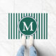Elegante Doormat de onograma de rayas verdes esmeraldas.