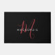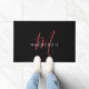 Elegante y moderno Crimson Rojo Script Monograma Doormat. Un elegante monograma de escritura dorada combinado con una limpia fuente san-serif blanco, le da un aspecto contemporáneo.
