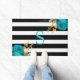 Felpudo Monograma floral turquesa dorado franjas blancas n