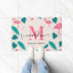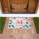 Monograma moderno Hojas tropicales Doormat Flamingo rosa caliente