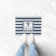 Una elegante alfombrilla de diseño náutico que presenta un caballito de mar y un patrón de rayas azules marinas y blancas con las iniciales de su monograma en un cuadrado bordeado de azul marino. Diseñado por Thisisnotme©
