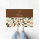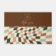 Doormat Monograma Personalizado Boho Warped Checkerboard. Se muestra en la paleta de tonos tierra en tonos marrones y verdes, pero TODOS LOS COLORES SON EDITABLES. Puede seleccionar 5 colores diferentes para el tablero de ajedrez, así como el fondo y los elementos monográficos. Personalice la plantilla con su primer monograma. © Kimbellished, LLC