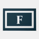 Rellene su puerta principal o patio con este Doormat inicial blanco azul de la Marina Monograma. Este moderno y sencillo diseño decora el porche o el patio de la puerta principal y también se puede utilizar en el interior. Tiene una gran letra blanca en negrita en el centro y un marco de borde blanco sobre fondo azul oscuro personalizable.