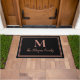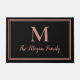Felpudo Monograma Personalizado Rosa dorado negro con bord
