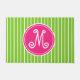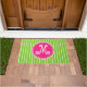 Felpudo Monograma rosa y franja verde brillante