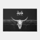 Este rústico toro de cráneo rústico, monocasco de vaquero de occidente, torreón interior al aire libre, tiene un diseño impreso de inspiración negra y blanca con un arte de estilo occidental. Guay, un moderno y moderno animal de granja. Derechos de imagen de Marg Seregelyi Photography.