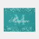 Doormat de color azul verde y blanco Purpurina Verde azulado de moda con un nombre de guión de caligrafía de personalizable y una plantilla de monograma negrita. Un elegante portero personalizado para su nueva casa o dormitorio.