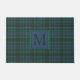 Esta alfombra de puerta monogramada presenta una manta clásica de color verde y azul. Personalice el monograma con su elección inicial. Regalo divertido para el primer apartamento o casa.
