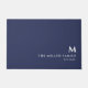 El doormat moderno presenta un diseño sencillo en una paleta de colores azul y blanco con medallón estilizado de monograma en blanco con tipografía moderna. Personalice con personalizado monogramado inicial, nombre de familia y fecha establecida, o utilice el botón "contactar con este diseñador" para obtener ayuda. Un boda perfecto o un regalo de bienvenida para la pareja elegante o un regalo de casa moderno para cualquier ocasión.