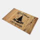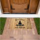 Doormat diseñado para la casa de montaña familiar. Silhouette de montañas y palmeras, personalizada con el nombre de su familia sobre un fondo de diseño rústico de madera. Perfecto para su casa de montaña/alquiler de vacaciones. O personalizar tu texto para cualquier uso.