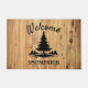 Felpudo Montañas Árboles Nombre de familia de madera rústi