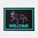Una representación brillante, de tipo neón, de un alce, Alces Alces, junto con un texto que dice "BIENVENIDOS". Inspirado por las auroras boreales.