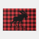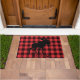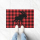 Doormat de felpa negra roja con silueta de alce caminando bienvenido doormat. Para su cabaña o cabaña.