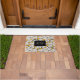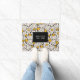 Doormat retro floral con flores color crema y mostaza amarillas sobre un fondo negro. Agregue su propio texto personalizado si es necesario. Elementos coincidentes disponibles. Arte original de artistas que poseen ilustraciones. Use el botón de mensaje que aparece a continuación para obtener ayuda sobre la personalización y las solicitudes especiales. © Zoe Chapman Design