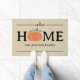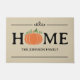 ¡La caída está en el aire! Cambie su tradicional felpudo con este lindo y simple felpudo de calabaza personalizado. El diseño de la tipografía muestra la palabra "Hogar" en beige con texto con un acento de calabaza naranja lindo en lugar de la "O". Añade tu apellido o apellido a continuación para personalizar. Disponible en beige y negro.